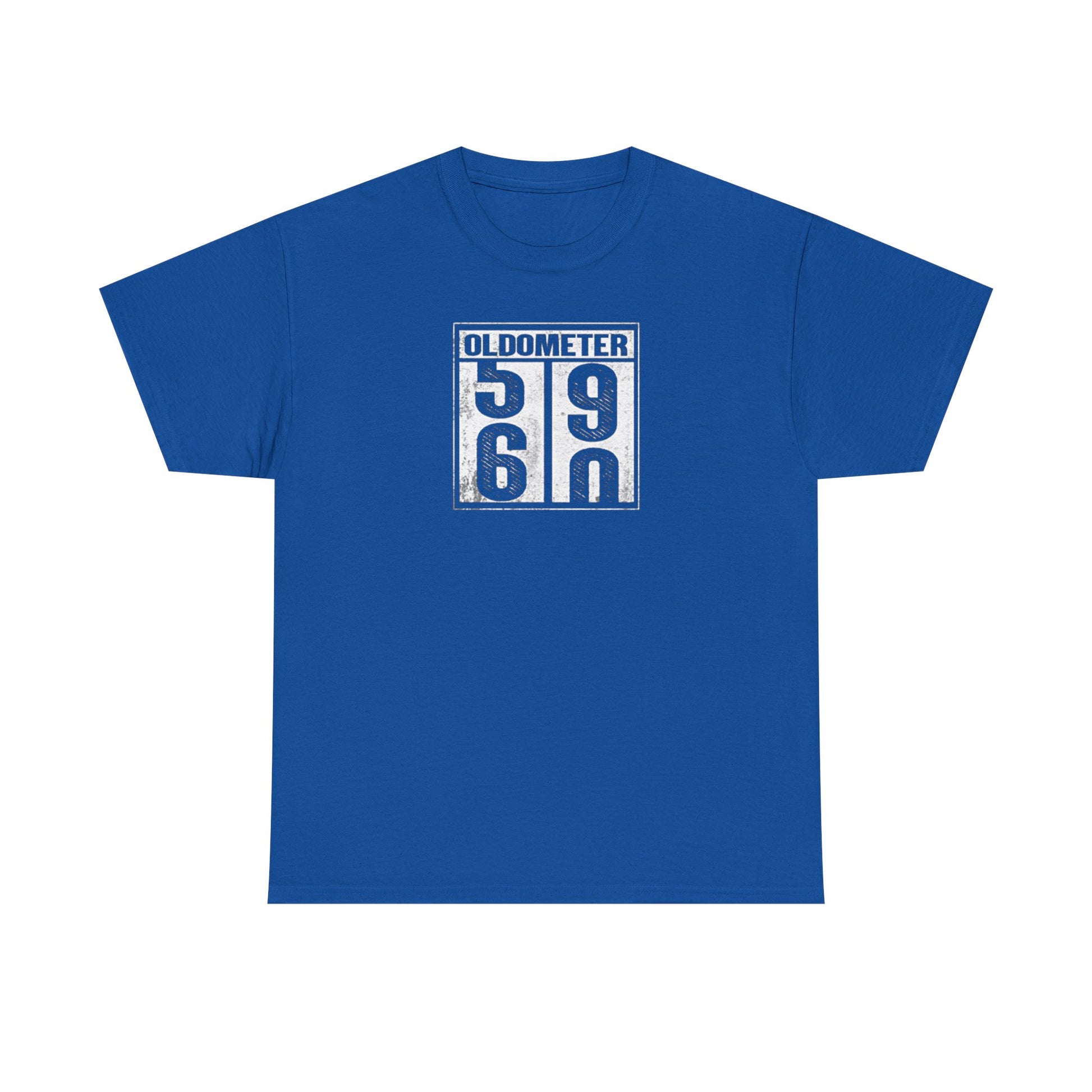 Celebrate your milestone in style with the 59 to 60 'Oldometer' T-shirt – a fun and unique way to showcase your journey through life's amazing decades.